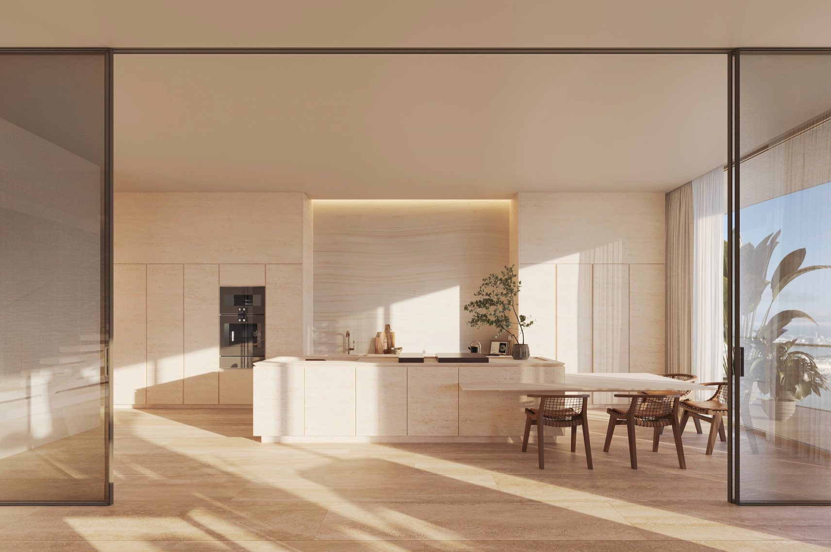 The interior of this luxury tower is even more impressive, boasting 80,000 sq. ft. of tailored residential amenities. The project aimed to incorporate elements from prestigious residences worldwide that would stand the test of time. Yidios traveled around the world in search of the finest elements to add to this development. Thus, the design boasts elements like Italian Bisazza mosaic tiles, custom Italian kitchen and bathroom cabinetry, and smart home technologies for lighting and temperature control.