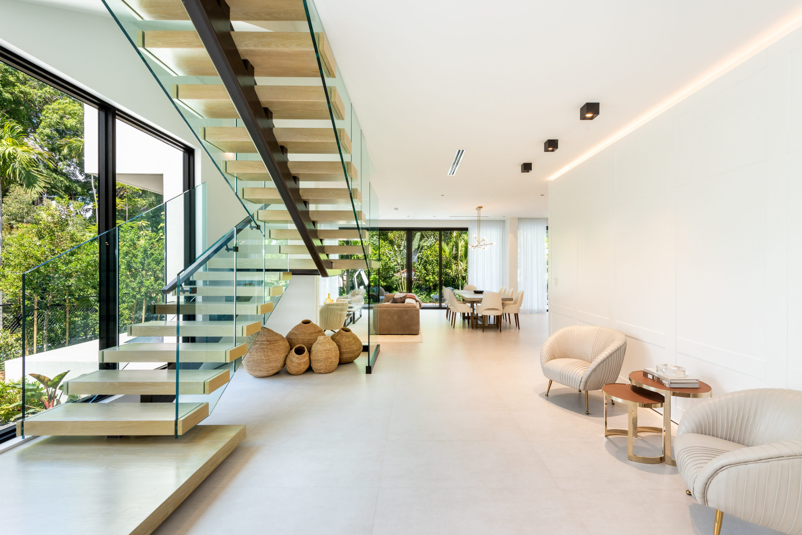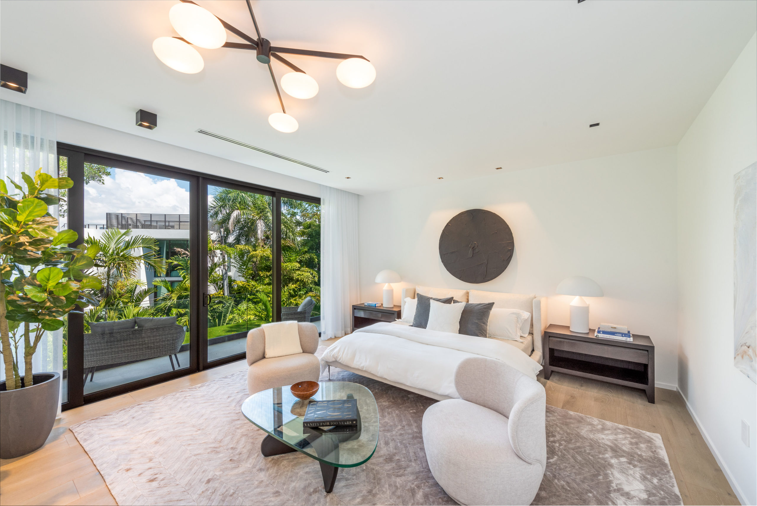 Floating staircase takes you upstairs where 4 large bedrooms surround an upper family room, while the entire 2nd floor of this home is wrapped with a terrace. Wood floors, luxury baths, Italkraft walk-in closets, and so much more awaits you here. Adding an extra layer of luxury is the rooftop deck overlooking the tropical landscape of Hibiscus Island.