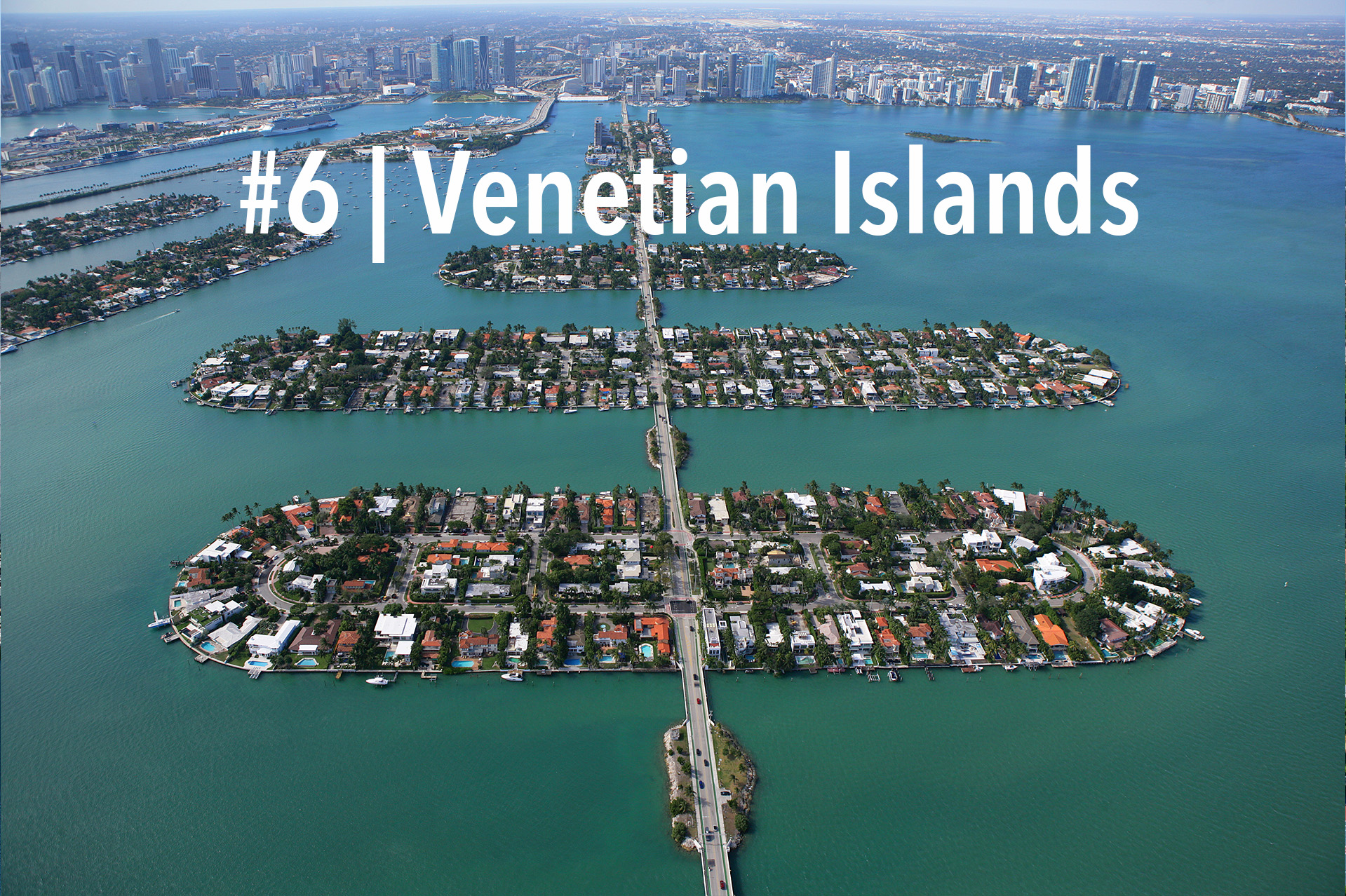 6. Venetian Islands are a neighborhood of 6 man-made islands interconnected with the Venetian Causeway, which is one of the most scenic drives in the country, connecting Miami Beach with Miami! Here, 25 E Rivo Alto sold in 2022 for $31.5M – the highest recorded sale for this luxury community. Explore all waterfront properties and dry luxury homes in this prestigious neighborhood by clicking here.